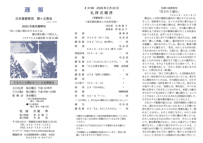 - 翠ヶ丘教会主任担任教師
