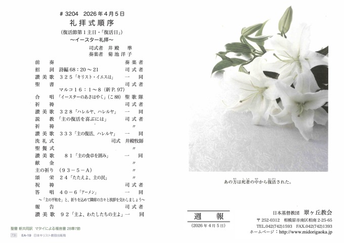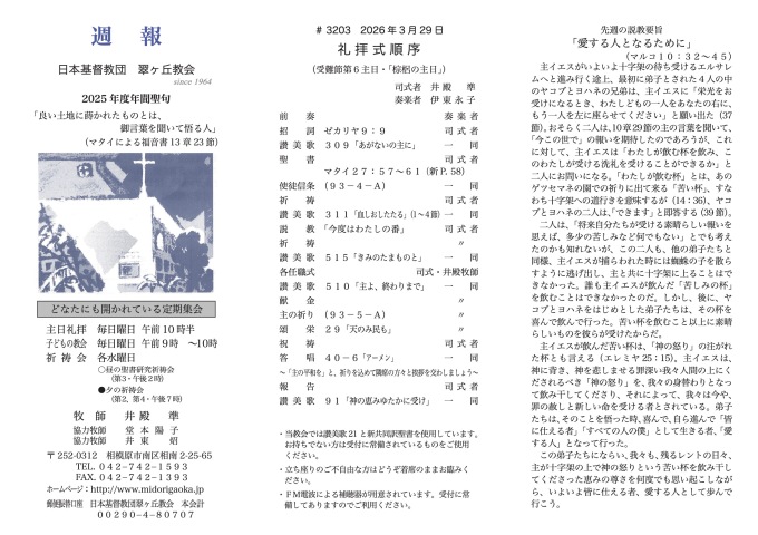 「はじめまして。牧師の井殿です。翠ヶ丘教会のことを知ってくださり、大変嬉しく思います。ぜひご来会くださり、声をかけてください。皆さんの来会をお待ちしています。」