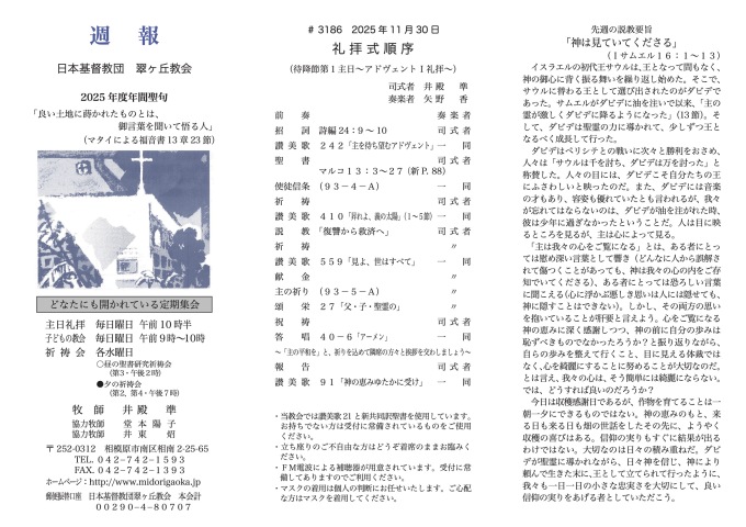 「はじめまして。牧師の井殿です。翠ヶ丘教会のことを知ってくださり、大変嬉しく思います。ぜひご来会くださり、声をかけてください。皆さんの来会をお待ちしています。」