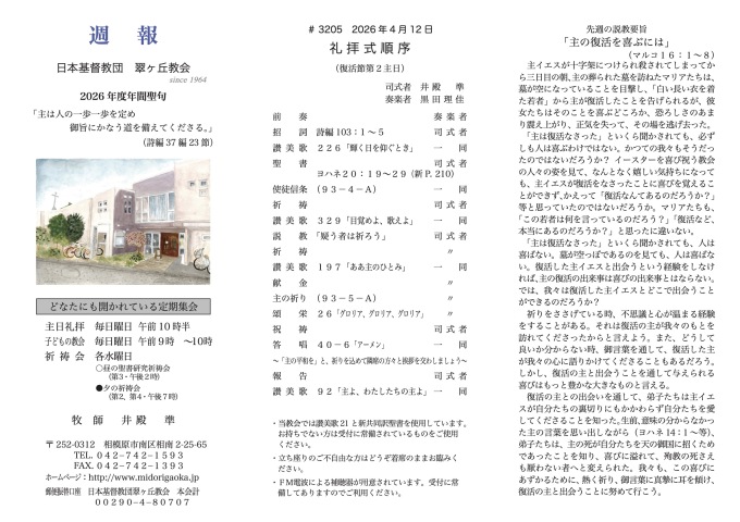 - 翠ヶ丘教会主任担任教師